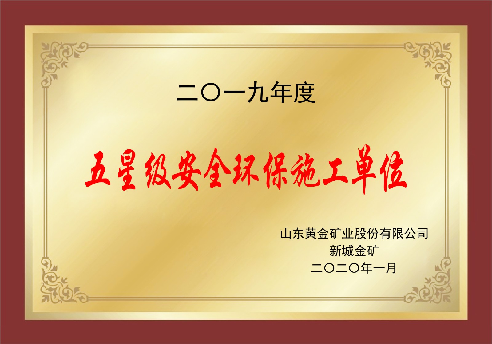 2019年度五星級安全環(huán)保施工單位