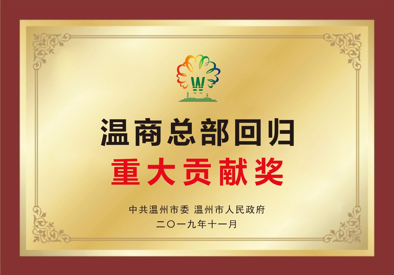 溫商總部回歸重大貢獻(xiàn)獎